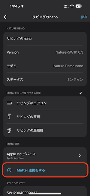 Nature Remo nanoに登録した家電をホームアプリに追加する(Matter連携する)
