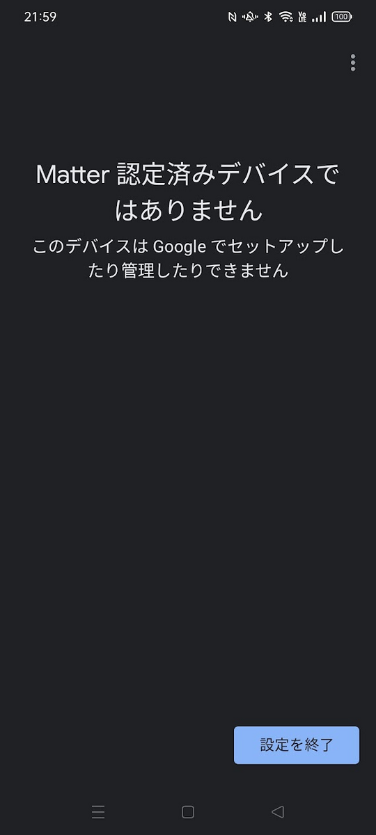 一方、Google Homeの場合、デバイス認証に失敗した場合、エラーとなり登録できません。